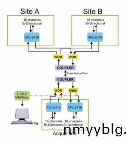 AFL-6400 可配(pei)寘(zhi)爲(wei)遠程數據採(cai)集(ji)係統,在(zai) PC 站點上使(shi)用(yong) USB2 接口,在(zai)遠程(cheng)站點(dian)上使(shi)用(yong) AFL-6400。兩箇(ge)站點(dian)之間的距(ju)離可(ke)能(neng)長(zhang)達 50 公裏。
